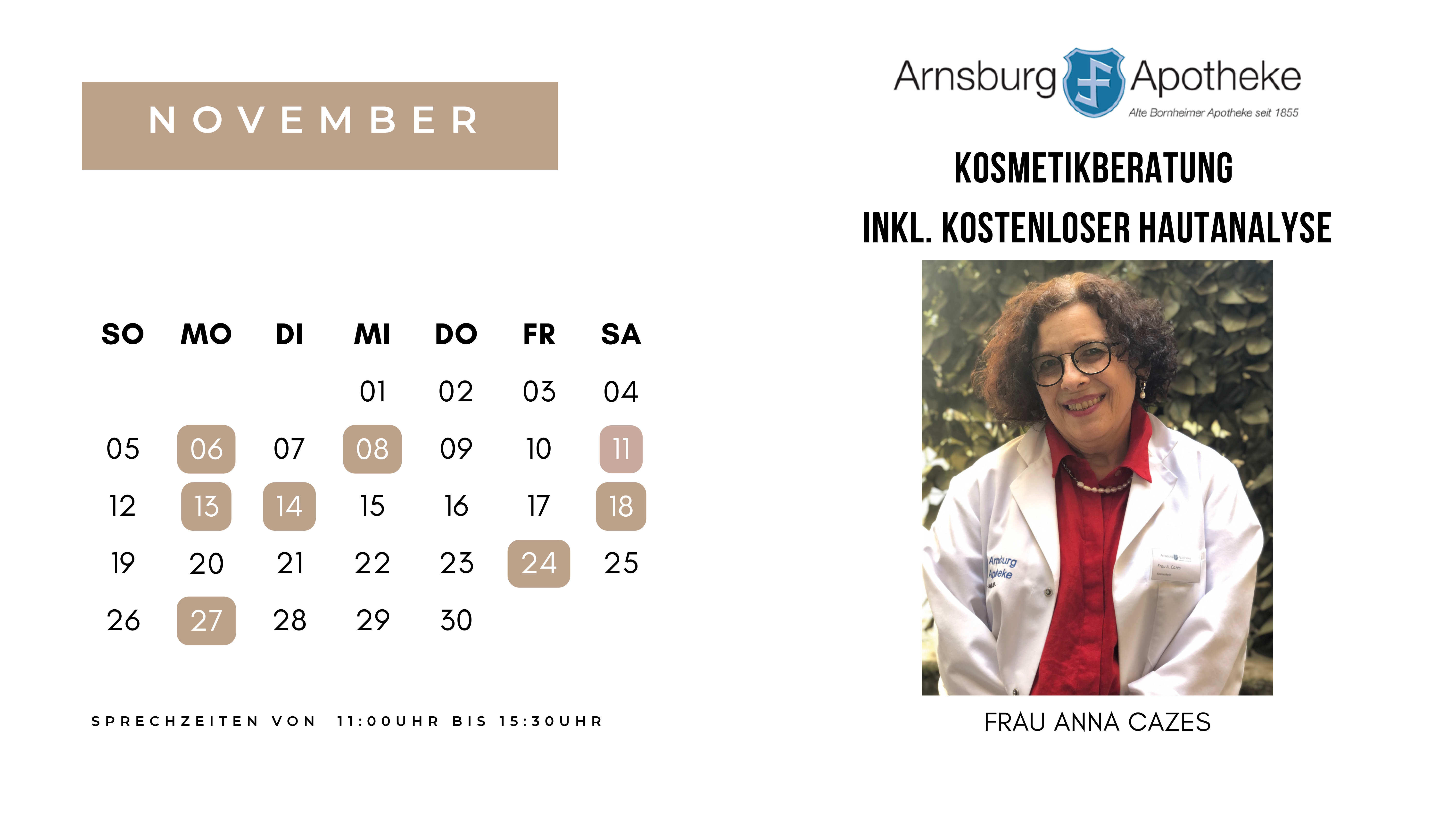 Wir beraten Sie gerne zu Neurodermitis, Akne, Couperose, feuchtigkeitsarmer Haut oder klassischer Anti-Aging Pflege. Auf Wunsch führen wir eine Hautanalyse durch. Mit unserem Hautanalysegerät messen wir Ihre Melanin-, Feuchtigkeits- und Fettwerte. Dadurch können wir Ihre perfekten Pflegeprodukte aus unserem großen Sortiment hochwertiger und apothekenexklusiver Kosmetik finden.